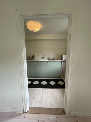 The entire apartment, apart from the bathroom, has been overhauled in the spring with newly laid plank floors and a newly renovated kitchen. But you have to bear in mind that it is an old house from the end of the 19th century, for example the ceiling is a little low on the upper floor.